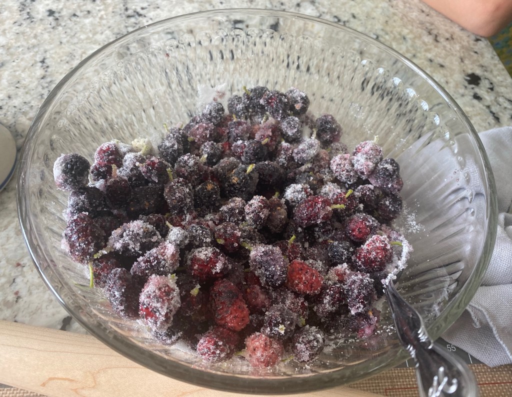 My friends have an incredible mulberry tree with abundant harvest for my pies and another friend’s jam project. I made this incredible dessert using my mixed berry pie recipe.