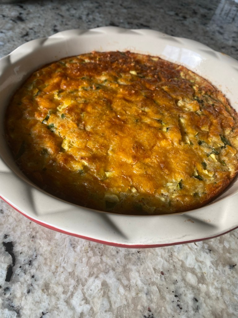 At the CSA yesterday, I left with 3 pounds of zucchini. I made this lovely zucchini pie using onions yellow peppers some fresh herbs zucchini and cheddar cheese. This will be a great lunch this week!