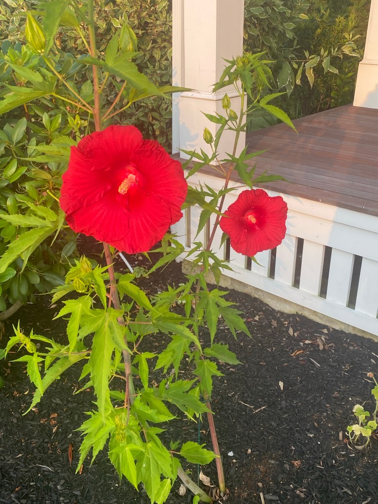 My hibiscus is blooming! It has been less than robust since we brought it to this house. But every August it does it’s best to bloom it’s little heart out.