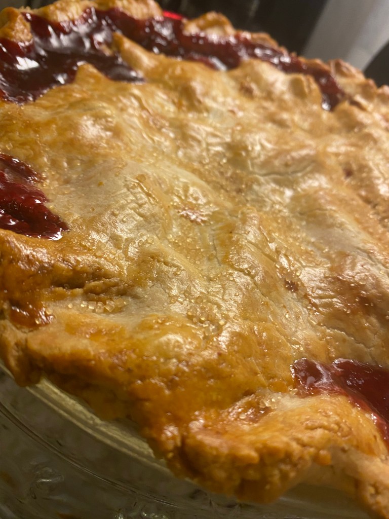 I made two attempts at using oil instead of butter or crisco. This morning I made a tart but could only press in the crust. In the afternoon, I tried again using another recipe when I made this gorgeous mixed fruit pie. I’ll post the recipes soon as I’m too bust eating now!