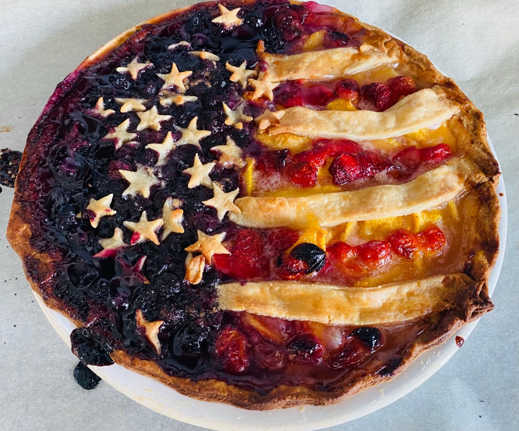 Happy 4th of July Posted byheleneuysalJuly 4, 2022Posted inholiday bakingTags:holiday, mixed fruit pie I’m posting a mixed fruit pie with peaches, cherries and blueberries. Happy 4th! Share this: Click to share on X (Opens in new window) X Click to share on Facebook (Opens in new window) Facebook Like Loading...